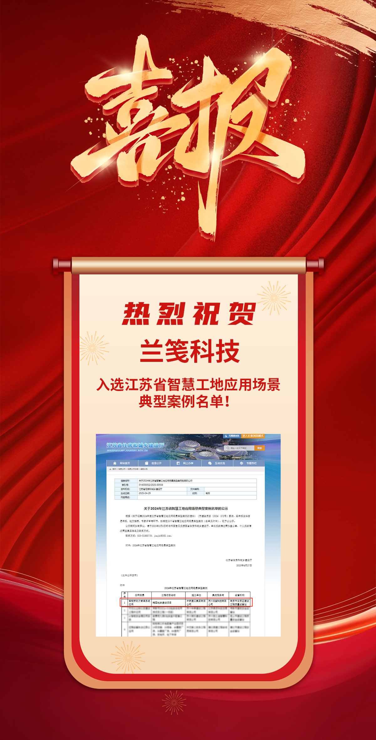 喜報!熱烈祝賀蘭箋科技入選江蘇省智慧工地應(yīng)用場景典型案例名單!